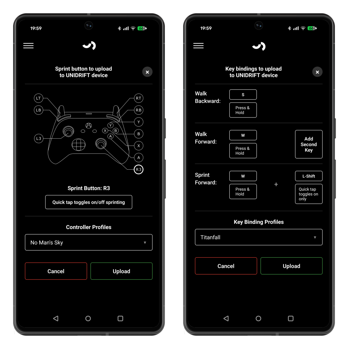 Our free app allows you to tell Unidrift which inputs to use for each game. You can also save these inputs as profiles to allow for seamless switching between games.