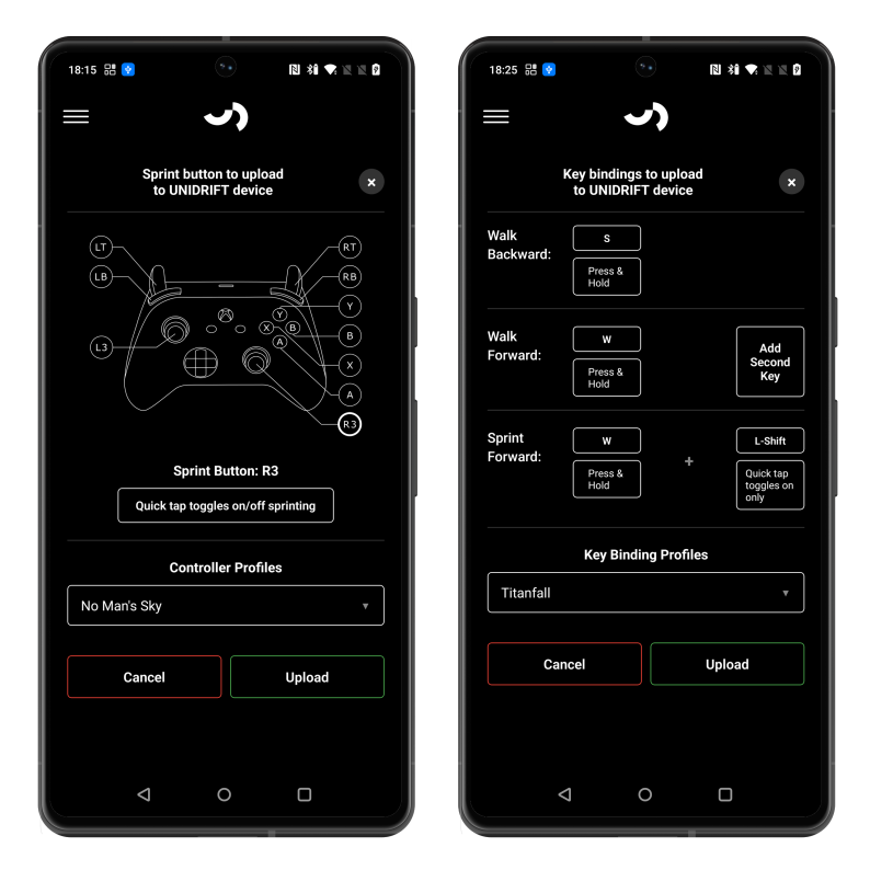 A free Android/iOS app allows you to tell Unidrift which inputs to emulate for each game. You can also save these inputs as profiles to allow for seamless switching between games.